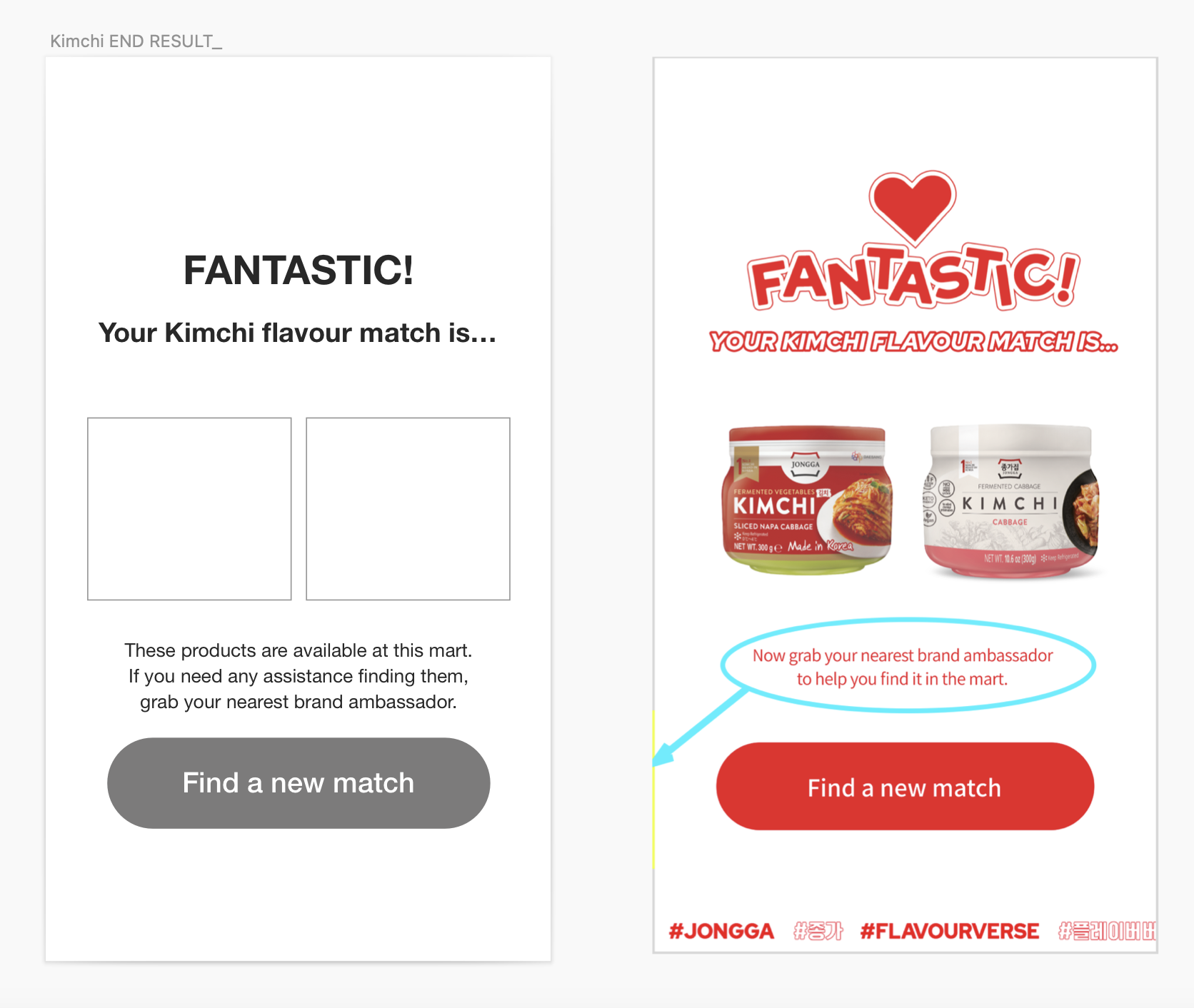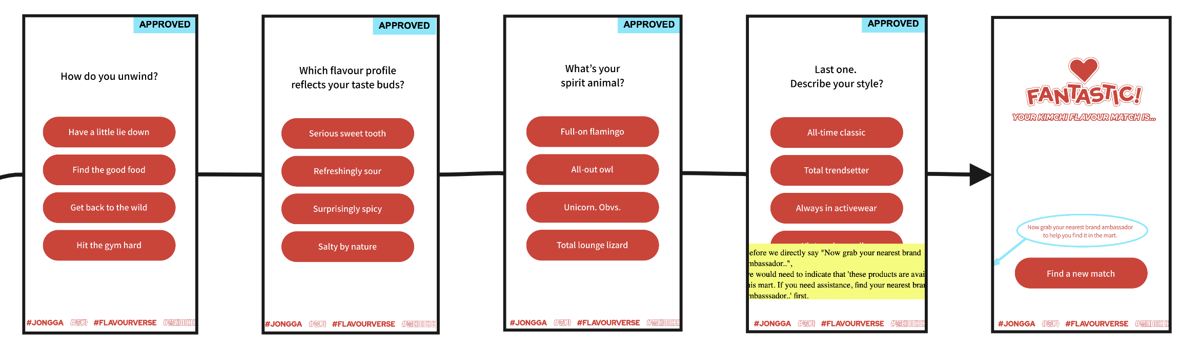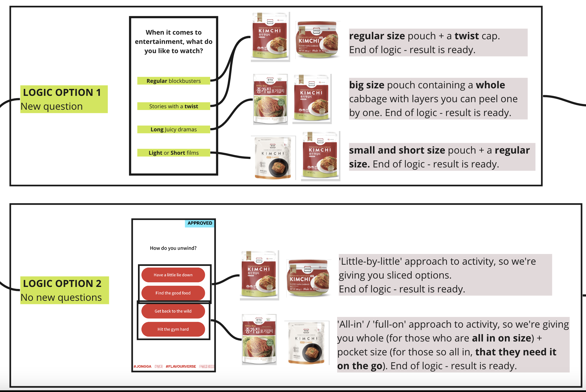 Logic & User Experience Design for a touchscreen game that matches the world's no.1 Kimchi products to customers' personalities. Part of an award winning immersive experience in London's Covent Garden.